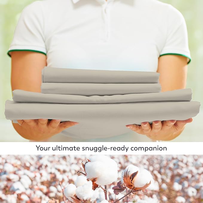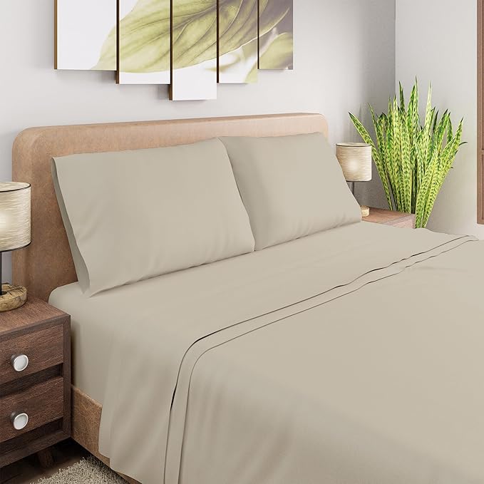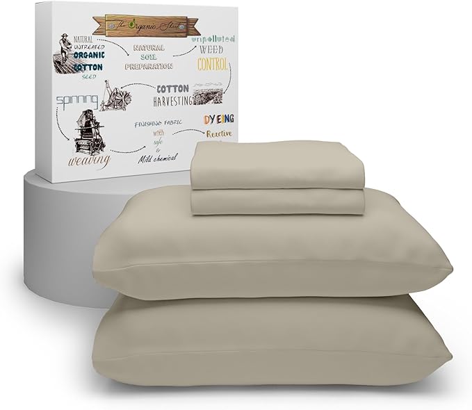 Purity Home Organic 100% Cotton Percale Sheets Queen Beige, 16" Deep Pocket Queen Sheets Set, Sheets for Queen Size Bed, Cooling Sheets, Crisp & Breathable, Queen Sheet Set Beige