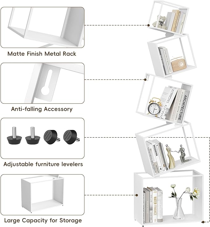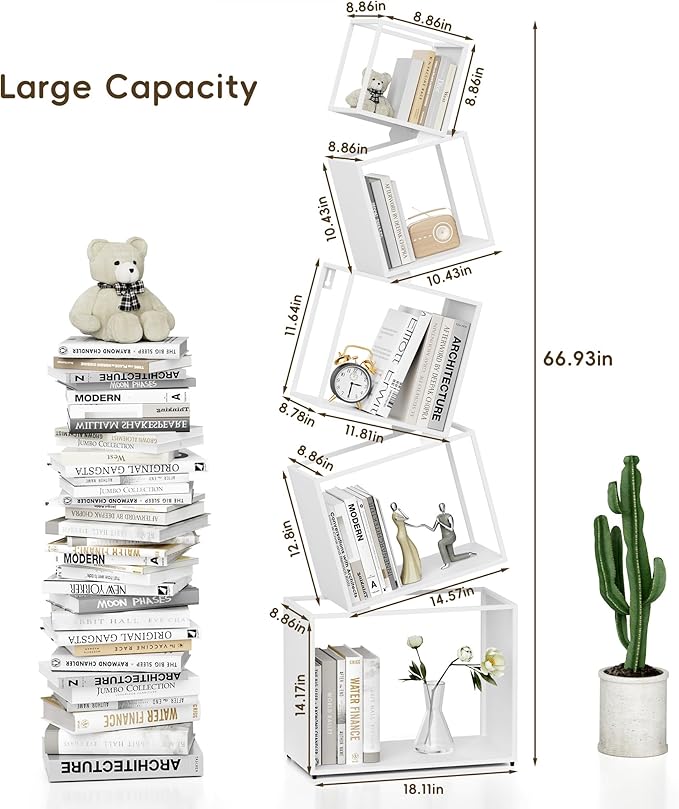 Bookshelf, Book Shelf, 5 Tier Bookshelf, White Bookshelf, 67'' Tall, Modern Bookshelf for Books/CDs/Home Decor