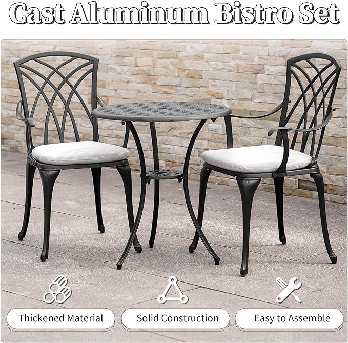 About This 【Cast Aluminum Bistro Set】: Romantic flower shape is rich in elegant and natural garden atmosphere. 3 pieces bistro...
