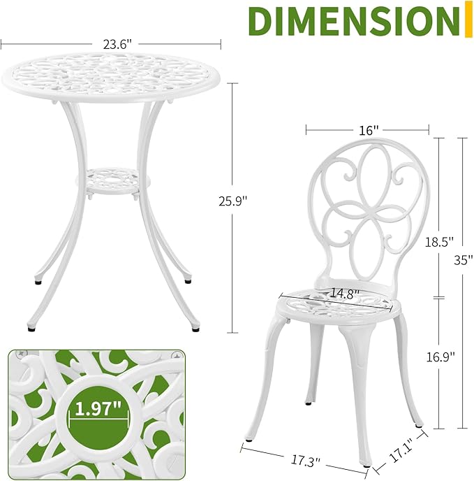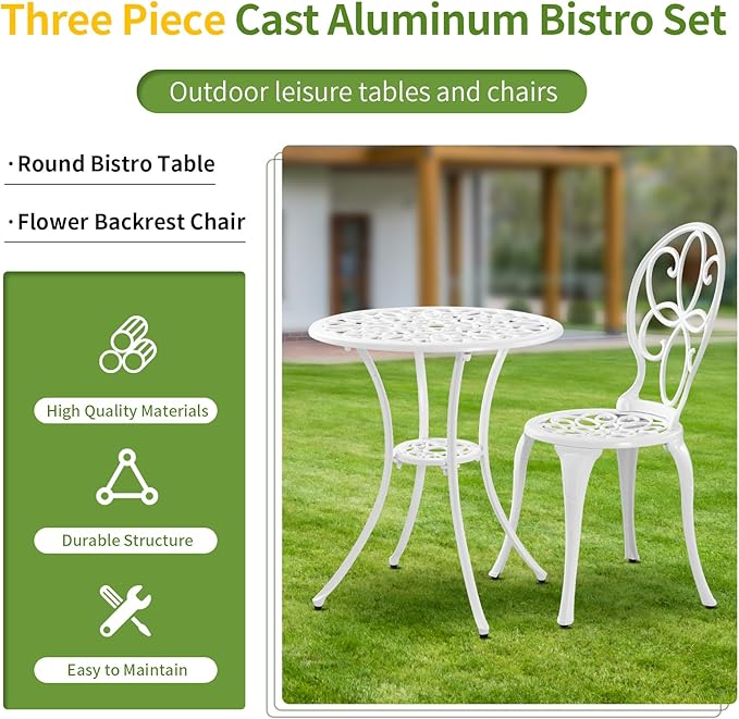 About This 【Durable Bistro Sets】Outdoor Bistro set made of solid cast aluminum with resistant powder coated, which is waterproof and...