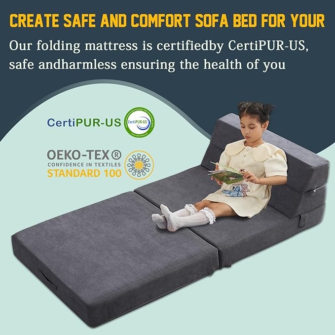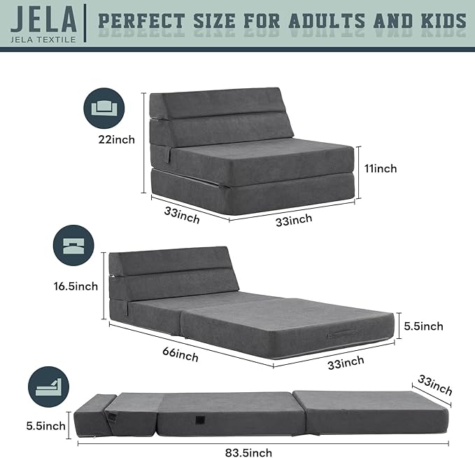 jela Sofa Bed Foldable Mattress Luxury Corduroy, Folding Sleeper Sofa Chair Bed Floor Mattress Floor Couch, Fold Out Couch Futon Mattress for Guest Room, Living Room