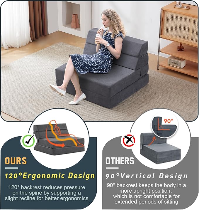 About This Larger Foldable Chair Bed: Our mattress topper size is 83"x33"x5.5", which is thicker and longer than other folding...