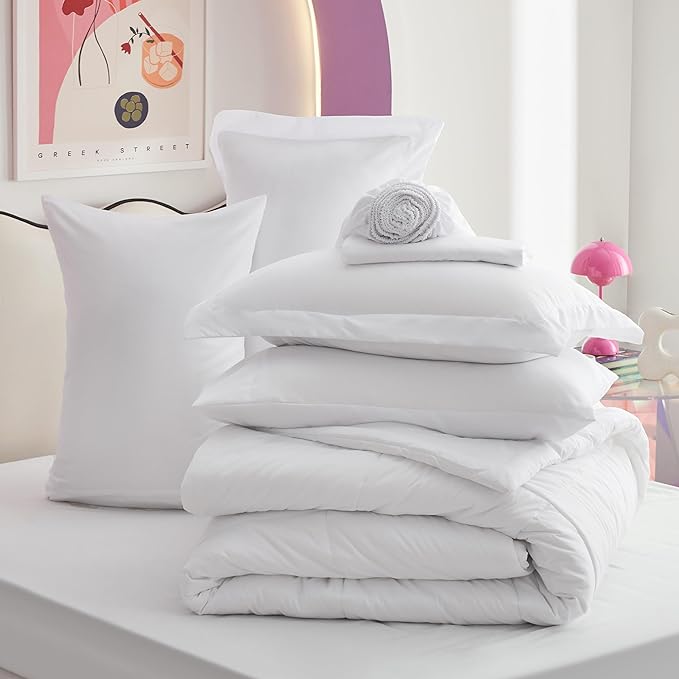 Bedsure White Full Size Comforter Set - 7 Pieces Solid Full Bed in a Bag, Full Bed Set White with Comforters, Sheets, Pillowcases & Shams