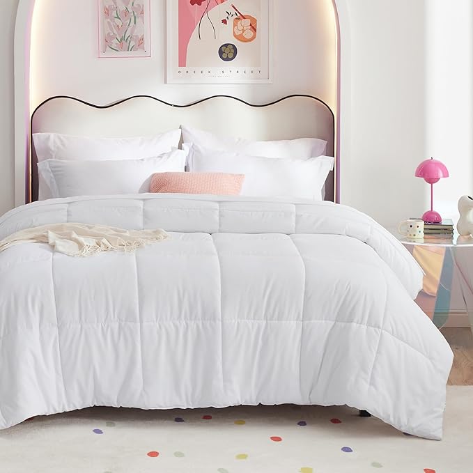 Bedsure White King Size Comforter Set - 7 Pieces Solid King Bed in a Bag, King Bed Set White with Comforters, Sheets, Pillowcases & Shams