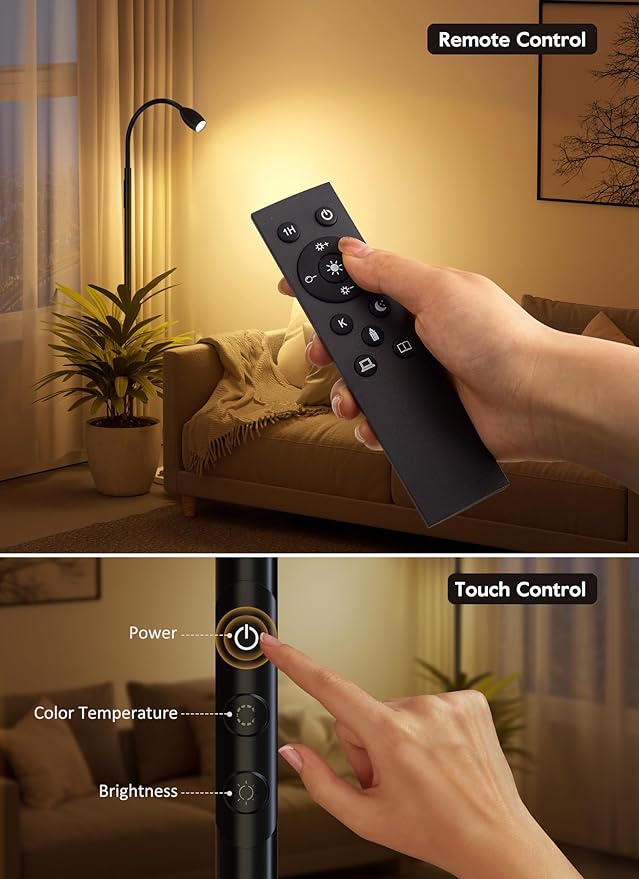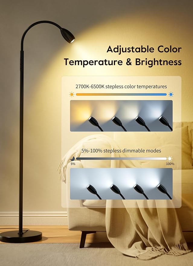Brightown LED Floor Lamp - Shrinkable Spotlights Adjustable Slim Lighting with Flexible Goose Necks, Standing Lamp for Reading Handicraft Standing Lights, Work On Lights