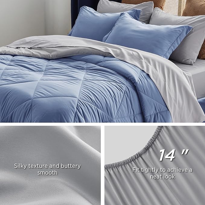 Bedsure Infinity Blue Full Size Comforter Set - 7 Pieces Reversible Full Bed in a Bag, Full Bed Set Infinity Blue and Grey with Comforters, Sheets, Pillowcases & Shams