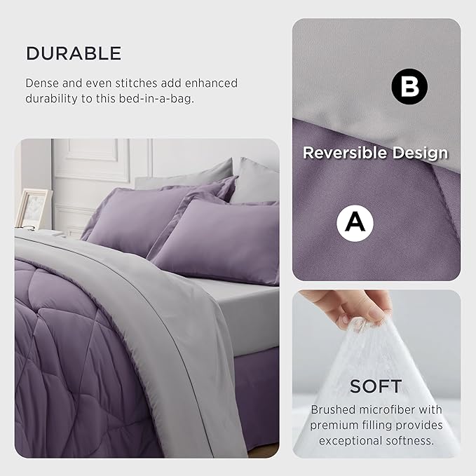 Bedsure Grayish Purple Twin XL Comforter Set - 5 Pieces Reversible Twin XL Bed in a Bag, Twin XL Bed Set Grayish Purple and Grey with Comforters, Sheets, Pillowcase & Sham