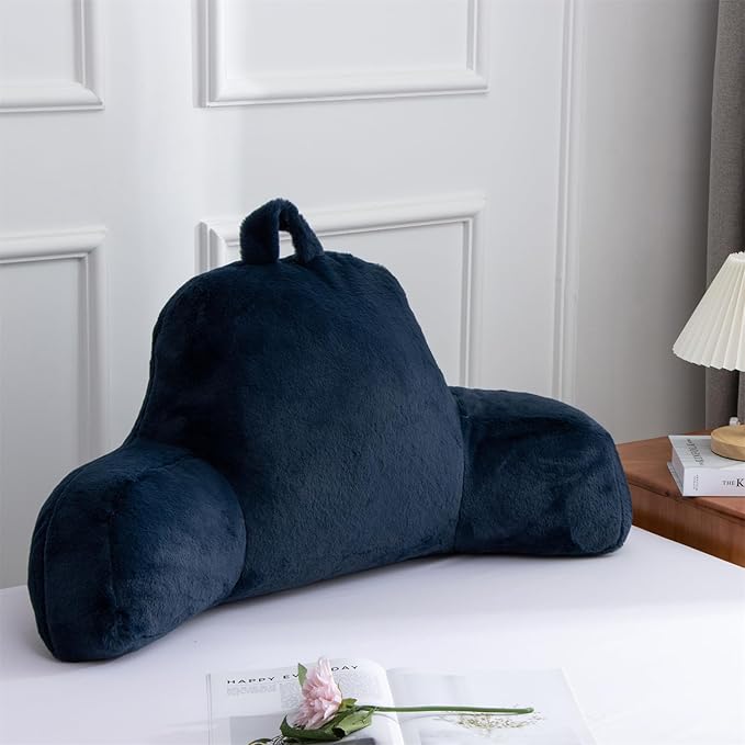 Aimuan Reading Pillow Bed Rest Wedge Large Adult Backrest Pillow with Arms Back Support for Sitting Up in Bed Cushion Incline Rest Sleeping Snoring Pillow, Dark Blue Large