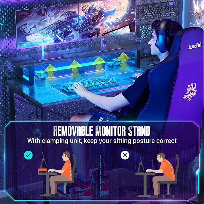 About This Gaming Desk with Smart LED Light: Mutiple RGB colors to choose from, as well as a variety of...