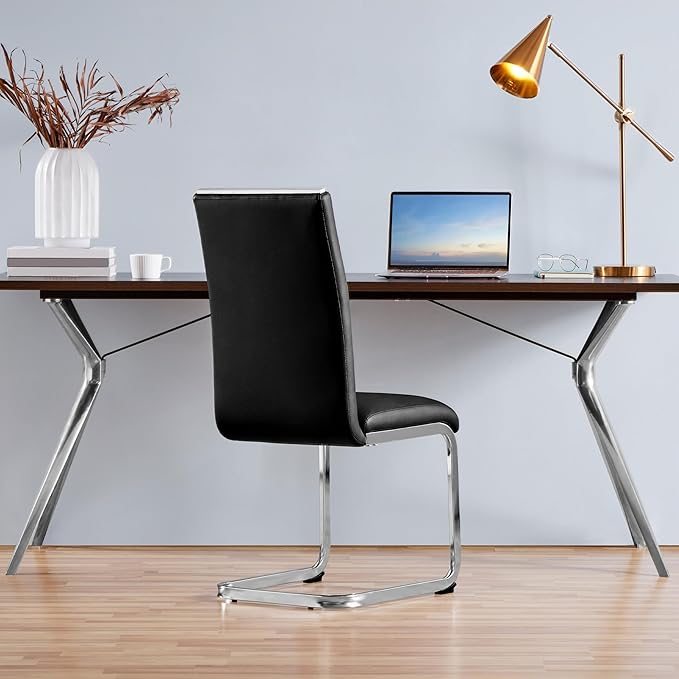 Yaheetech Dining Chairs Set of 2 Modern Dining Room Chairs Kitchen Chairs with Faux Leather Seat, Solid Legs and High Back for Dining Room, Kitchen, Black