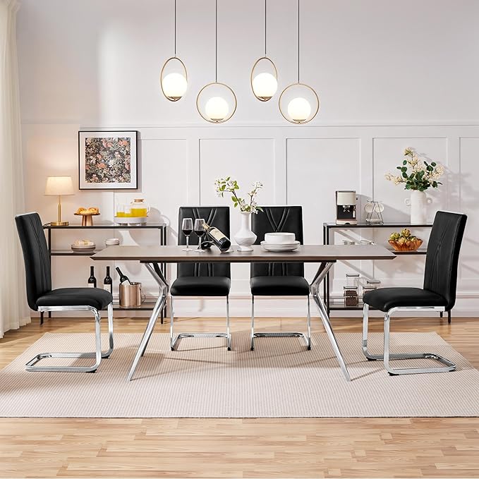 About This 【Modern Minimal Style】Featuring a streamlined silhouette and a textured all-white/ all-black soft PU leather surface, this dining chair...