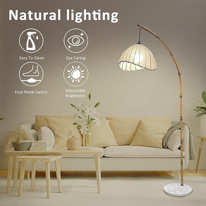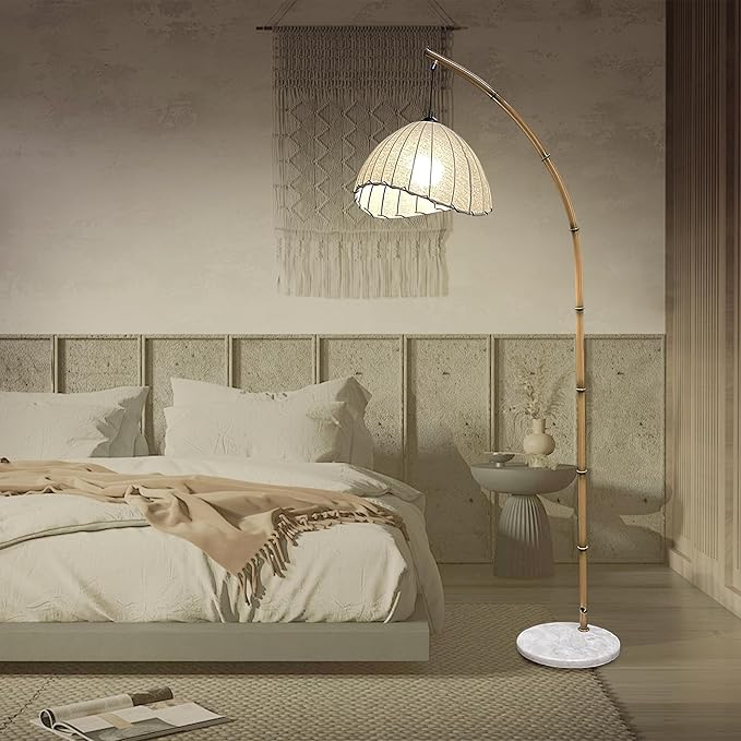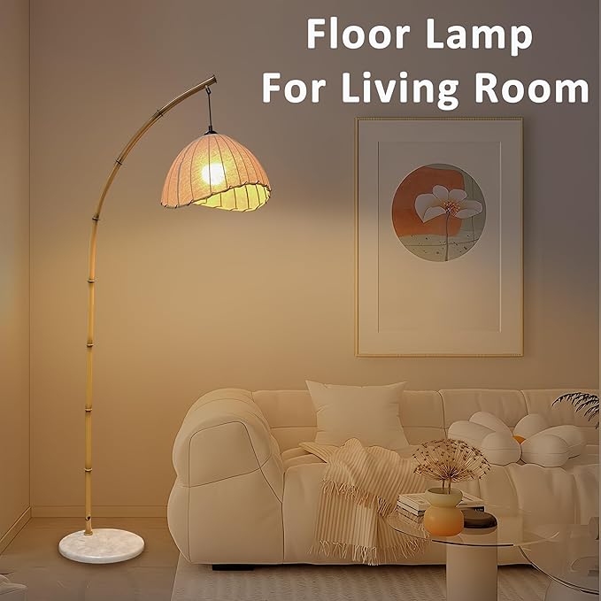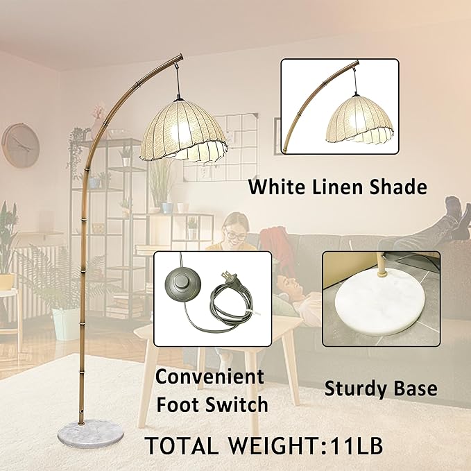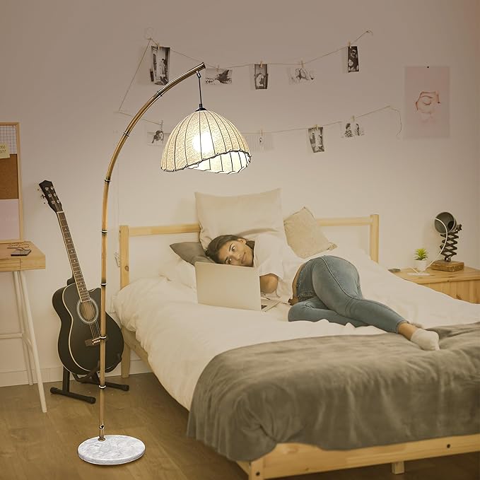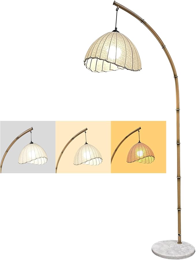 Bamboo Floor lamp, Unique Bohemian Hanging arc Floor lamp, Antique Vine Style, Restaurant Vertical lamp, Marble Base Farmhouse Study Living Room Corner lighting