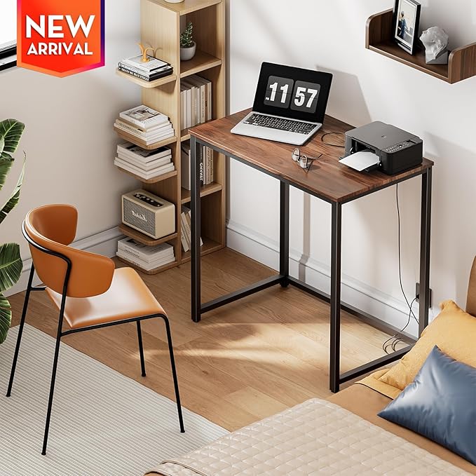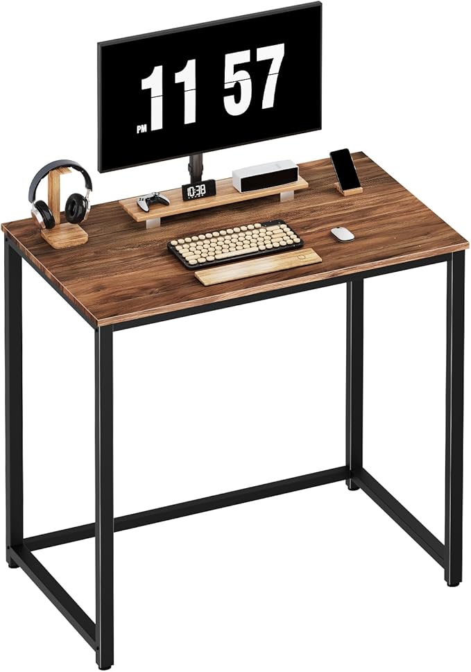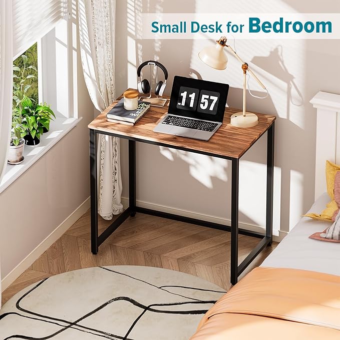 SINPAID Small Computer Desk 31.5 inches Desk for Small Spaces Sturdy Home Office Desk Modern Gaming Desk Study Writing Laptop Table, Brown