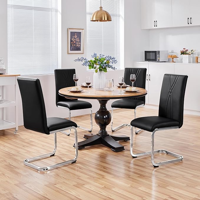 Yaheetech Dining Chairs Set of 4 Modern Dining Room Chairs Kitchen Chairs with Faux Leather Seat, Solid Legs and High Back for Dining Room, Kitchen, Black