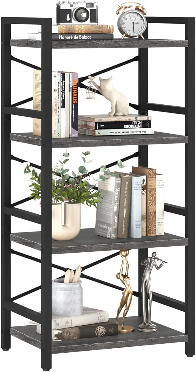 Yoobure 4 Tier Bookshelf - Small Book Shelf Industrial Bookcase, Narrow Book Case Book Storage Organizer for CD/Movie/Book, Bookshelves for Bedroom Office Living Room Charcoal Gray