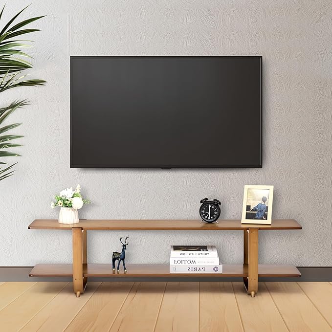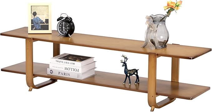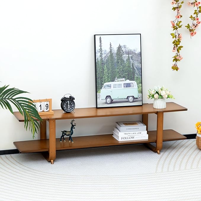 HollyHOME Bamboo TV Stand with Storage for TVs up to 65'', Modern Entertainment Center with 2 Open Shelf, Accent TV Media Console Table for Living Room, Bedroom, 55"(L), Walnut