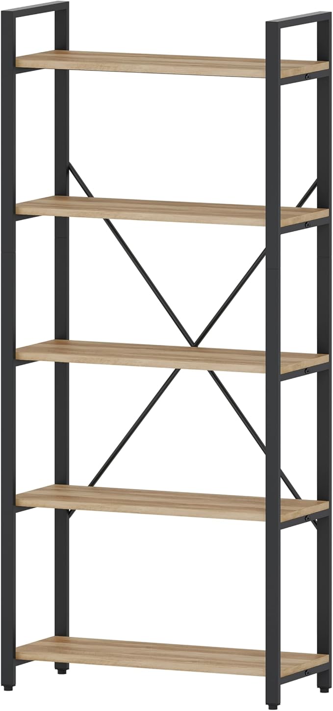 FATORRI 5 Tier Bookshelf, Industrial Wood and Metal Book Shelves for Display, Tall Etagere Bookcase and Rustic Shelving Unit (Rustic Oak)