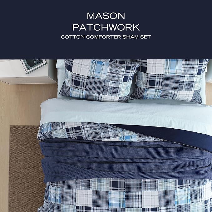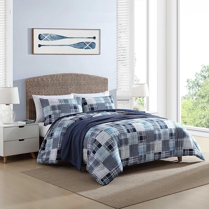 Nautica - King Comforter Set, Soft Cotton Bedding with Matching Shams, Patchwork Inspired Home Decor (Mason Blue, King)