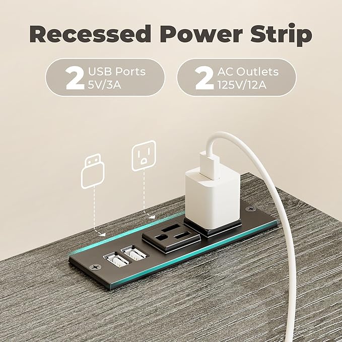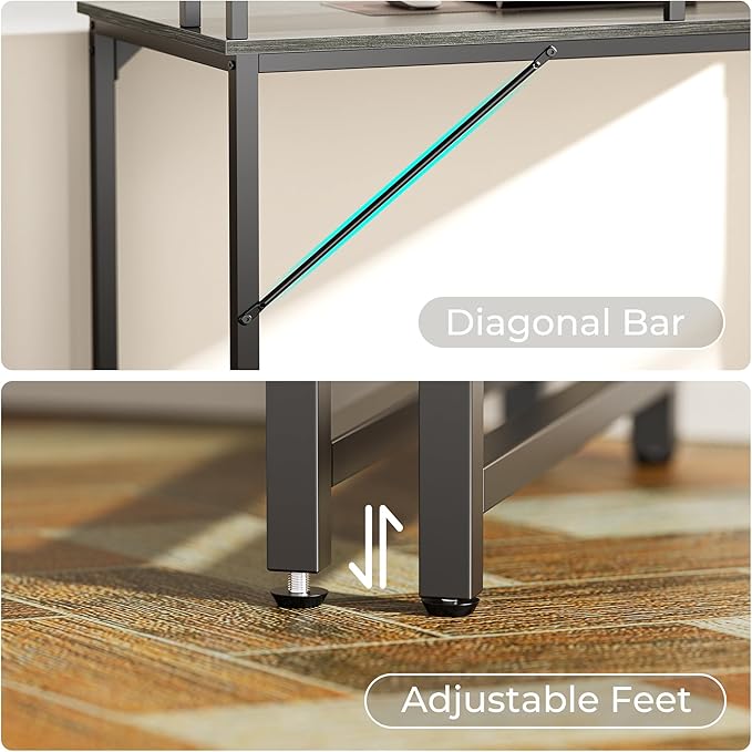 SUPERJARE 55 inch Computer Desk with LED Lights & Power Outlets, Gaming Desk with Monitor Shelf, Small Office Desk for Home & Office, Grey