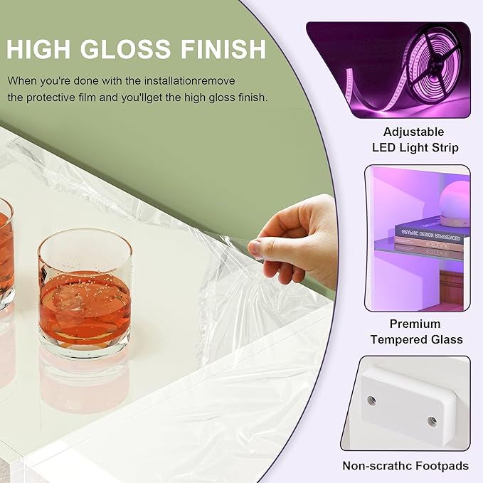About This 【Adjustable LED System】-This LED TV stand has a built-in LED light with 20 light colors and 4 light...