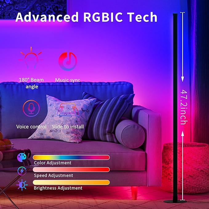 RGB Floor Lamp, LED Corner Lamp Works with Alexa, with Music Sync, with App and Remote Control, 16 Million Colors & 68+ Scene, Color Changing Standing Floor Lamp for Bedroom Living Room