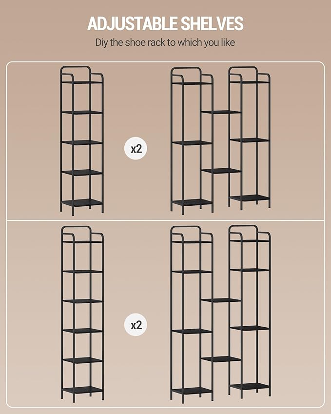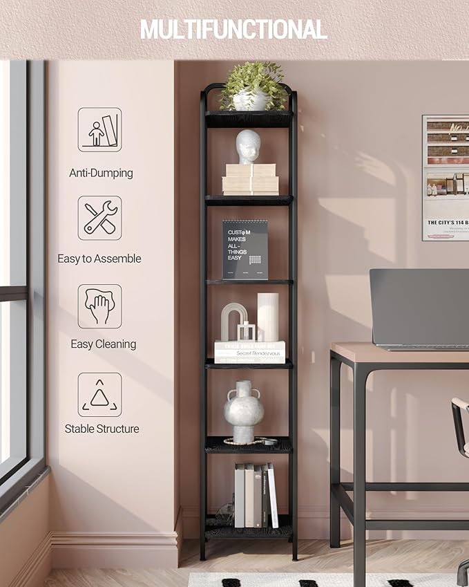 Bookcase Bookshelf, Narrow Book Shelf, Industrial Coner Shelf Storage Organizer, Slim Shelving Unit for Home Office, Living Room, Bedroom, Kitchen, 6-Tier Black BC24604B