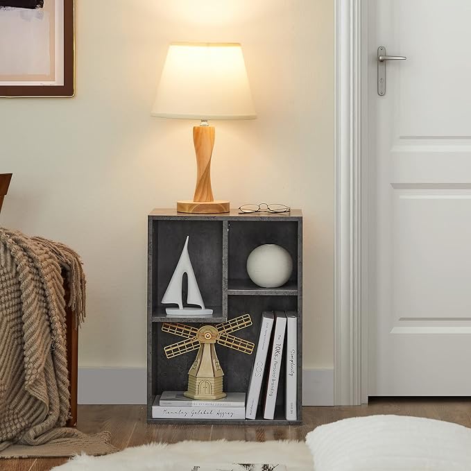 VECELO 3-Cube Small Bookshelf, Modern Bookcases with Shelves Height Up to 12.8 Inches, Suit for Common Size TextBook, Vertical or Horizontal, Cubby Storage Organizer,Grey