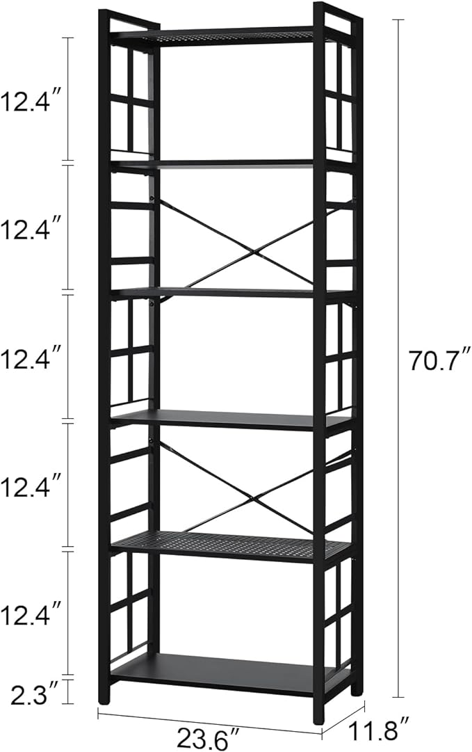 HOMBAZAAR Bookshelf,6 Tier Tall Bookshelf with Metal Frame,Open Bookshelves and Bookcases,Industrial Book Shelf for Living Room,Home Office and Bedroom,Black