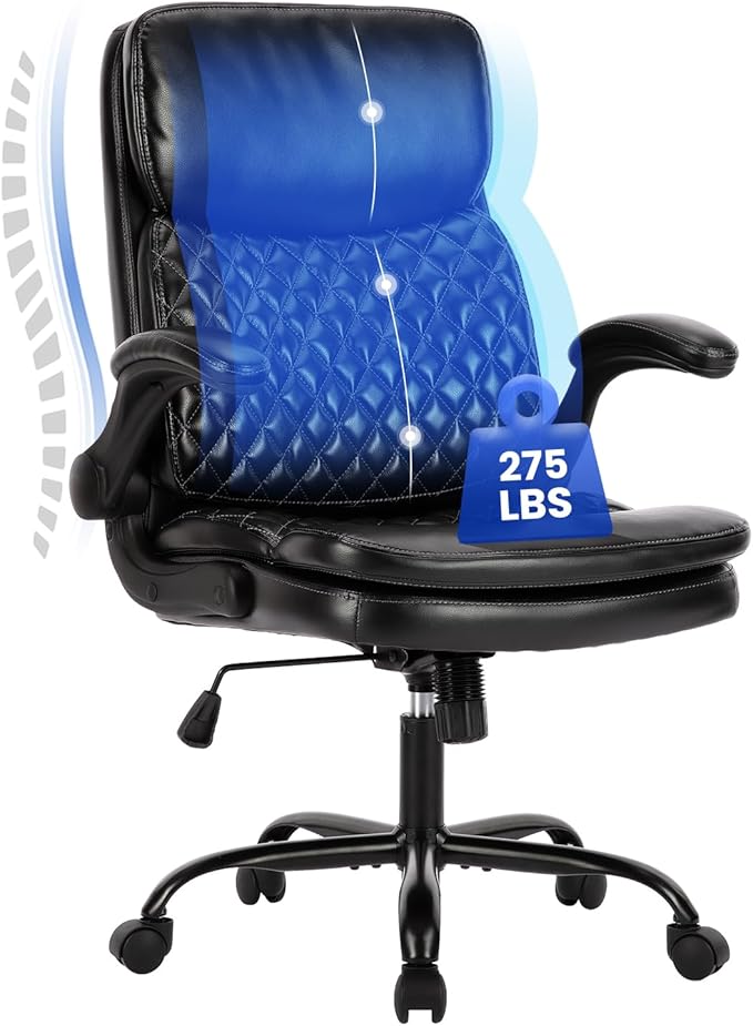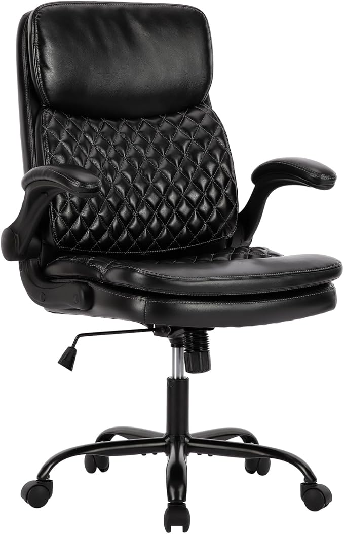 COLAMY Home Office Chair 275LBS Executive Leather OfficeChair with Padded Flip-up Arms, Adjustable Height and Tilt Lock, Tufted Black