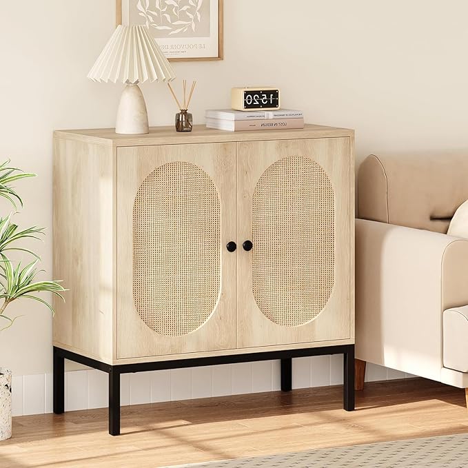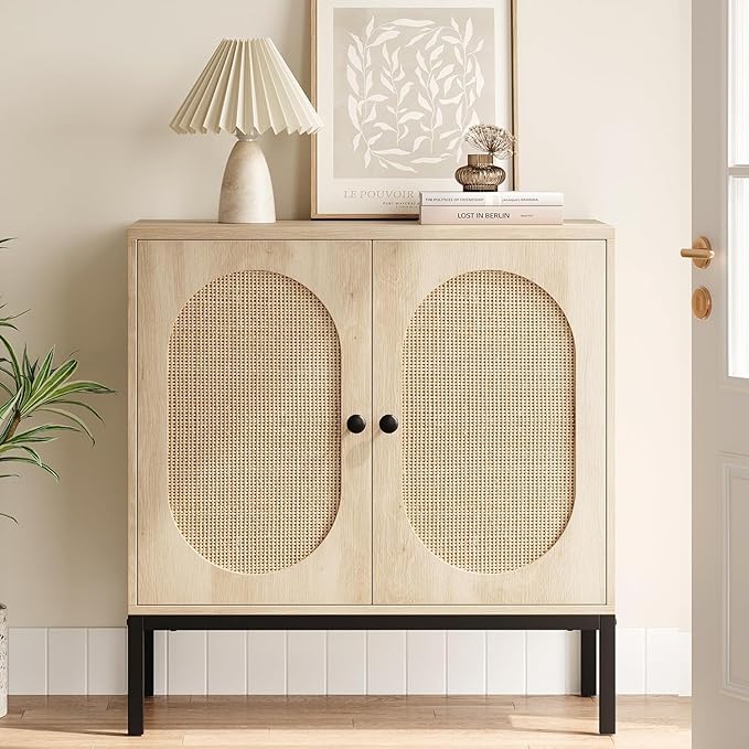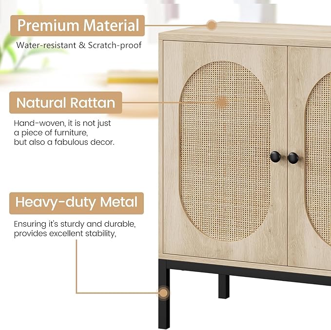 GAOMON Sideboard Buffet Cabinet, Rattan Storage Cabinet, Wood Accent Cabinet with Door and Shelf, Console Cabinet with Storage, Sideboard Cabinet for Hallway, Entryway, Living Room (Natural)