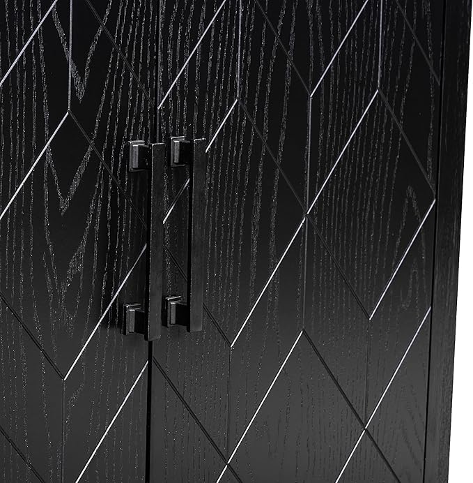 60" 4 Door Retro Sideboard with Adjustable Shelves,Wood Diamond-Shaped Lattice Pattern Storage Buffet Cabinet,w/ 4 Long Handle,for Living Dining Room,Black