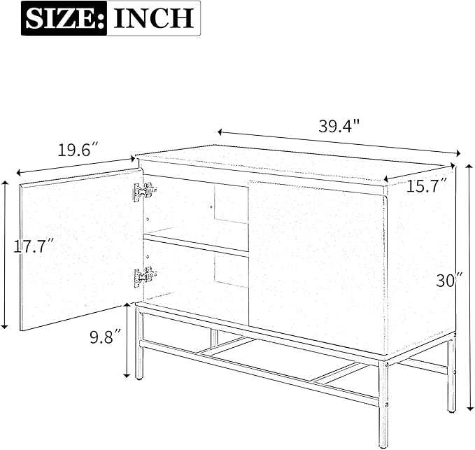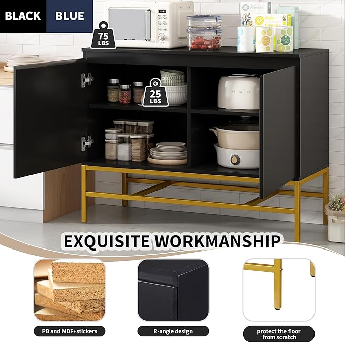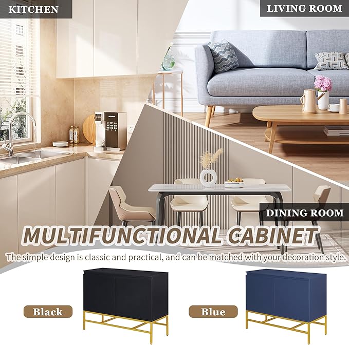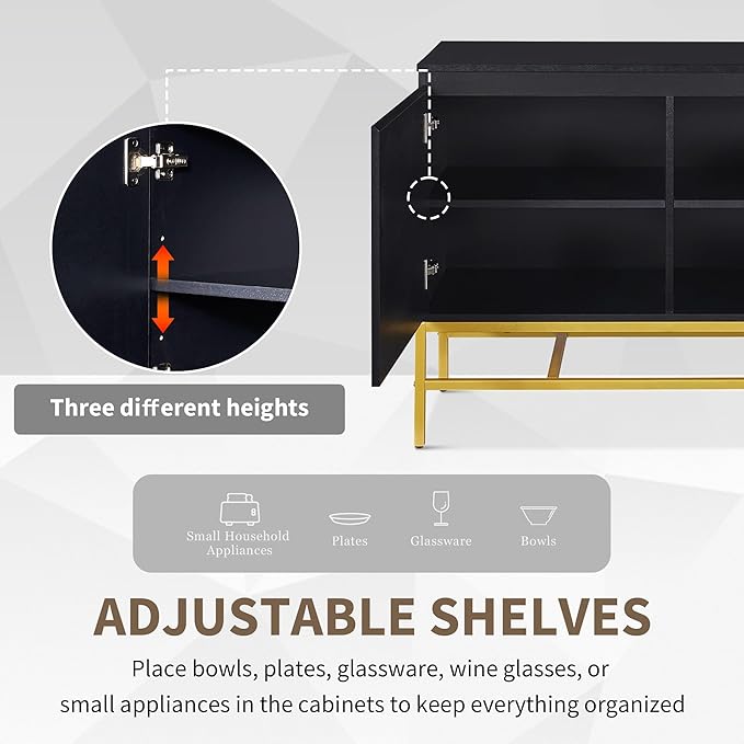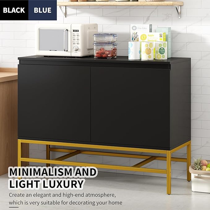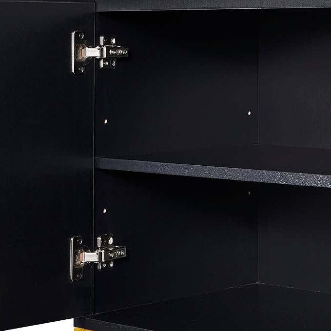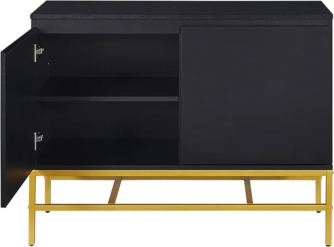 39.4" Minimalist & Luxury Two Door Sideboard with Gold Metal Legs,Freestandin Storage Buffet Cabinet,w/Adjustable Shelves,for Living, Dining Room,Entrance Passage,Black
