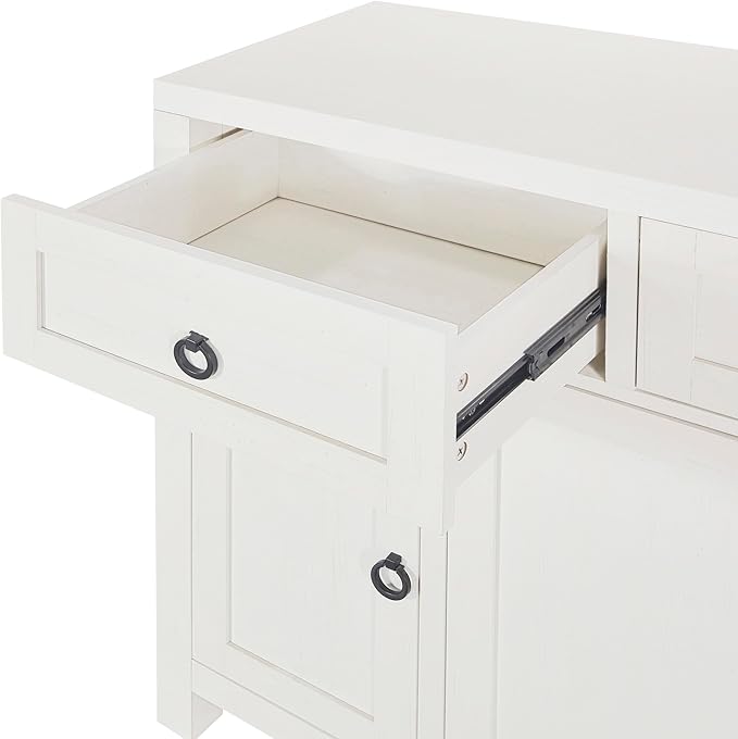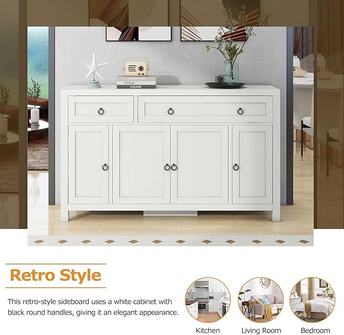 About This Retro Style: This retro-style sideboard uses a white cabinet with black round handles, giving it an elegant appearance....