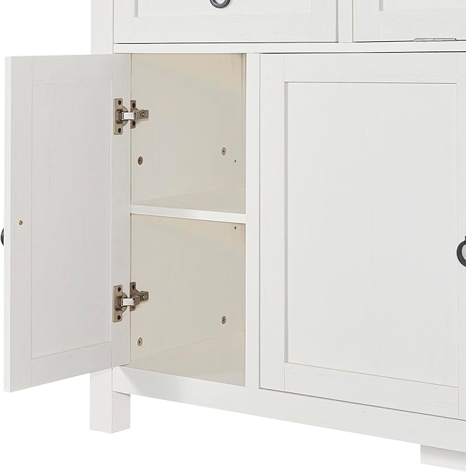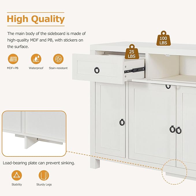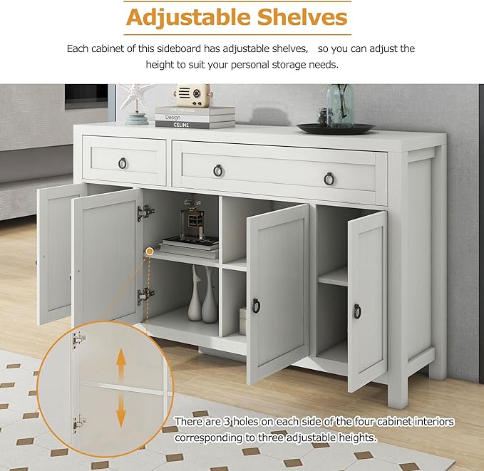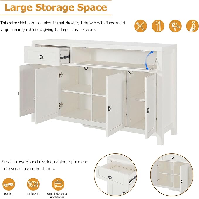 59.1" Retro Style Large Storage Space Sideboard with Flip Door and 1 Drawer,Multifunctional Buffet, w/ 4 Height-Adjustable Cabinets,for Dining, Living Room,Antique White