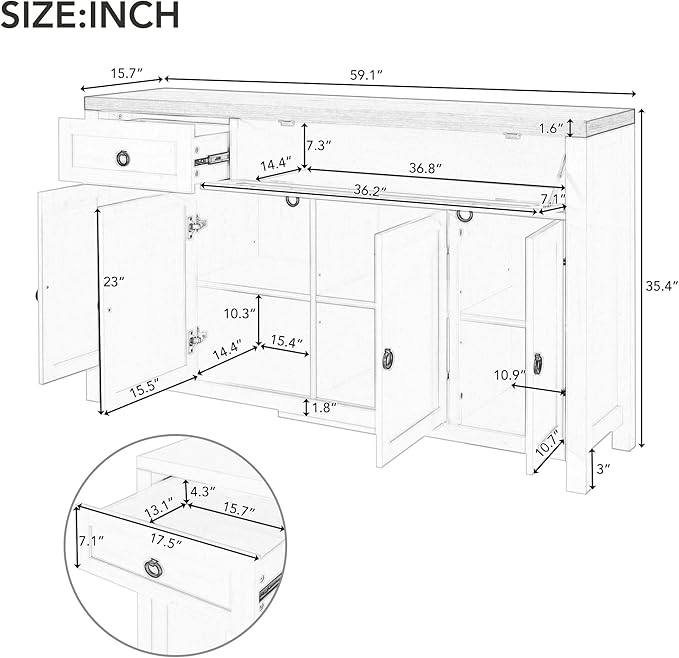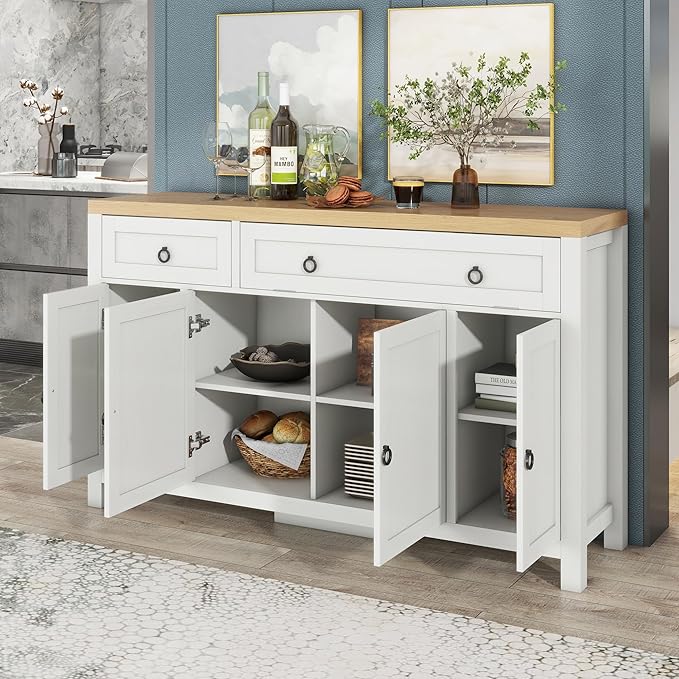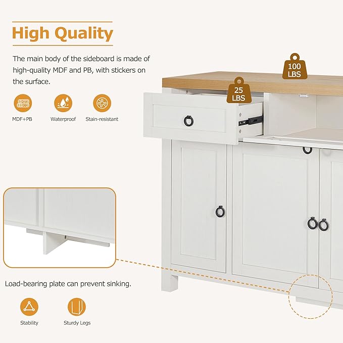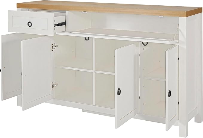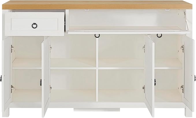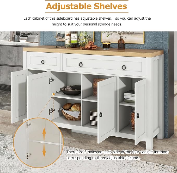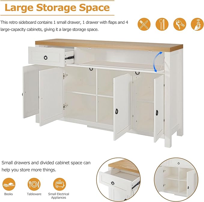 59.1" Retro Style Large Storage Space Sideboard with Flip Door and 1 Drawer,Multifunctional Buffet, w/ 4 Height-Adjustable Cabinets,for Dining, Living Room,Brown+Antique White