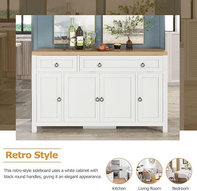 About This Retro Style: This retro-style sideboard uses a white cabinet with black round handles, giving it an elegant appearance....