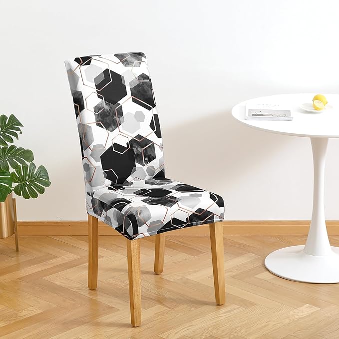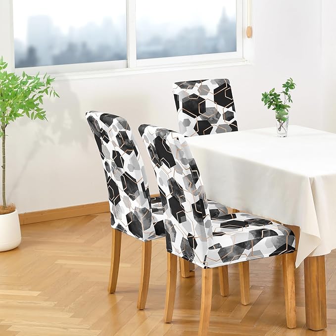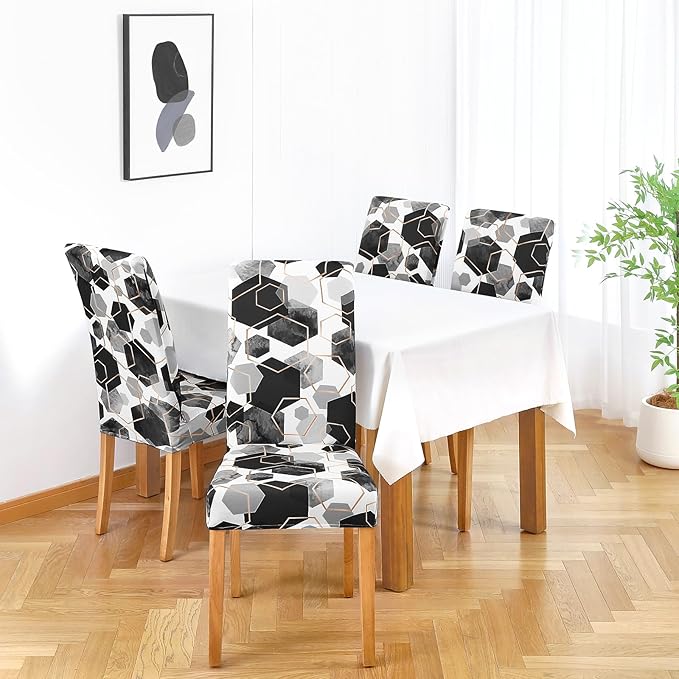 Gibelle Dining Room Chair Covers Set of 4, Soft Stretch Kitchen Chair Covers Slipcover Protector, Removable Washable Geometric Parson Chair Covers 4 Pack, Black