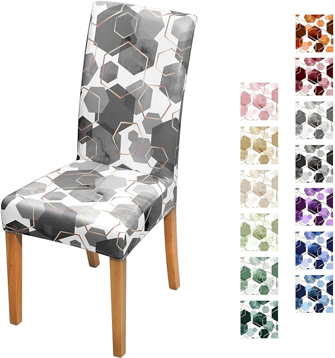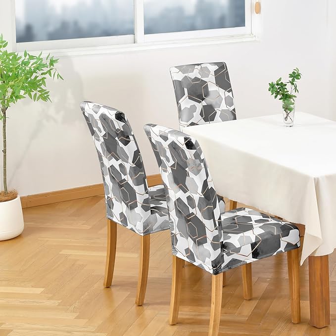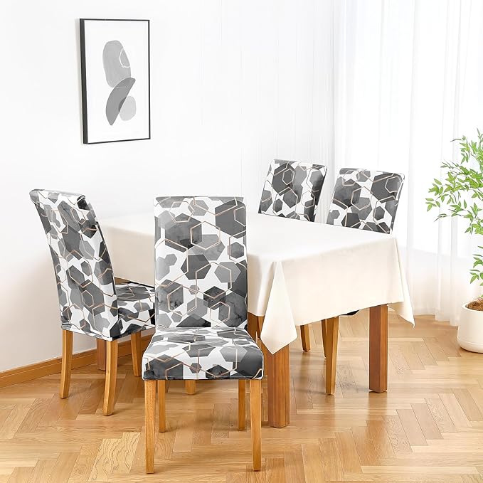 Gibelle Dining Room Chair Covers Set of 4, Soft Stretch Kitchen Chair Covers Slipcover Protector, Removable Washable Geometric Parson Chair Covers 4 Pack, Grey