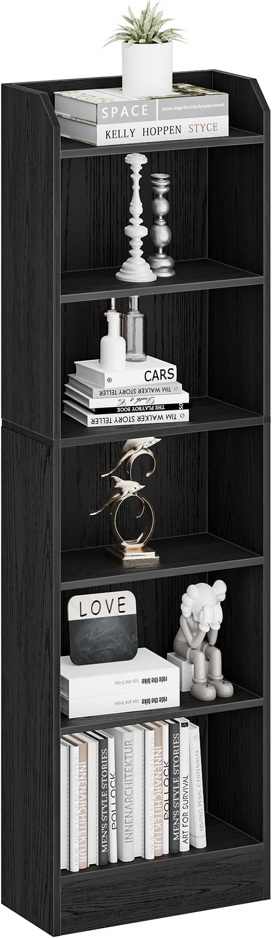 6-Tier Bookshelf, 66.7 Inches Floor Standing Bookcase, Display Storage Shelf, Corner Shelf, Home Decor Furniture for Home Office, Living Room, Bedroom, Black 02904XBC