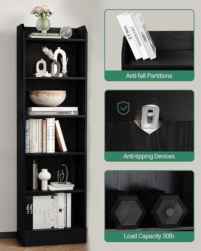 About This Stable and Safe: The bookshelf measures 9.5”D x 18.9”W x 66.7”H. The bottom layer of the entire bookshelf...