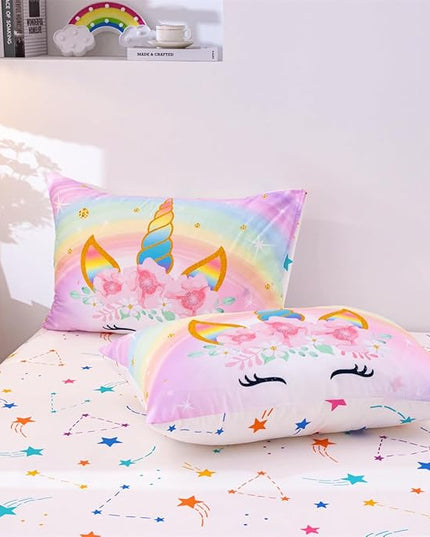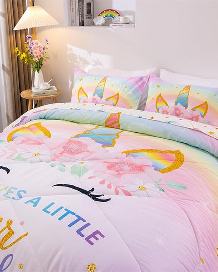 NTBED Unicorn Full Comforter Set with Sheets,5 Pieces Kids Bedding Sets for Girls, Lightweight Microfiber Star Floral Bed in a Bag, Rainbow