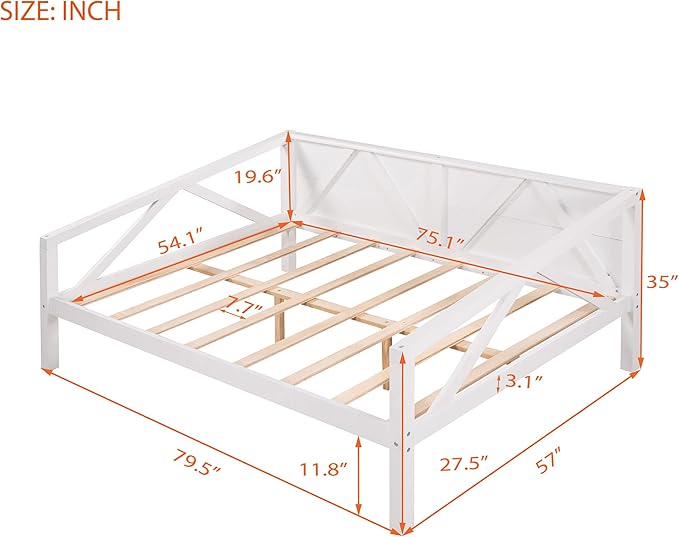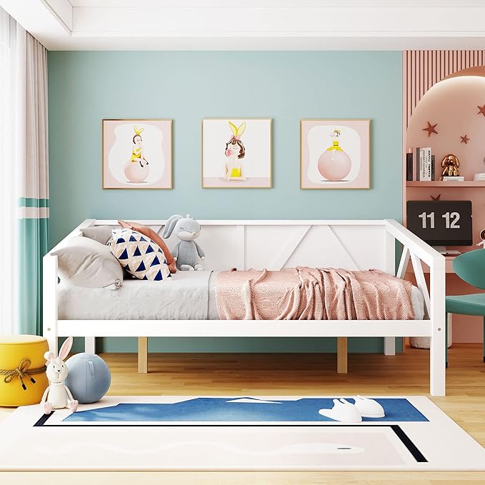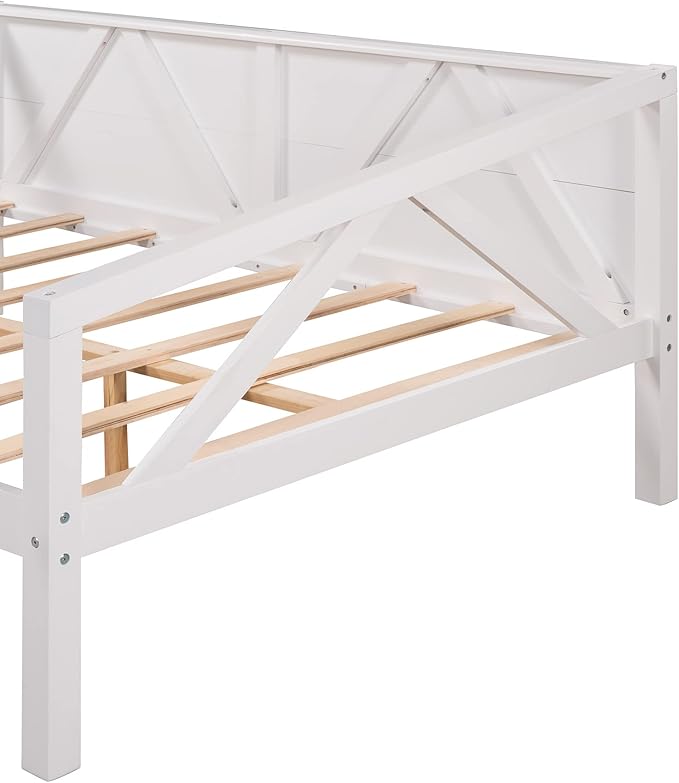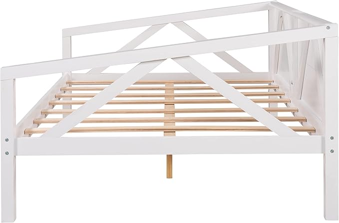 Jintop Full Size Daybed with Additional Storage Space,Sturdy Sofa Bed Frame W/ 8 Wood Slat Support,Easy to Install,for Teens Kids Girls Boys,Living Room Bedroom Apartment,White