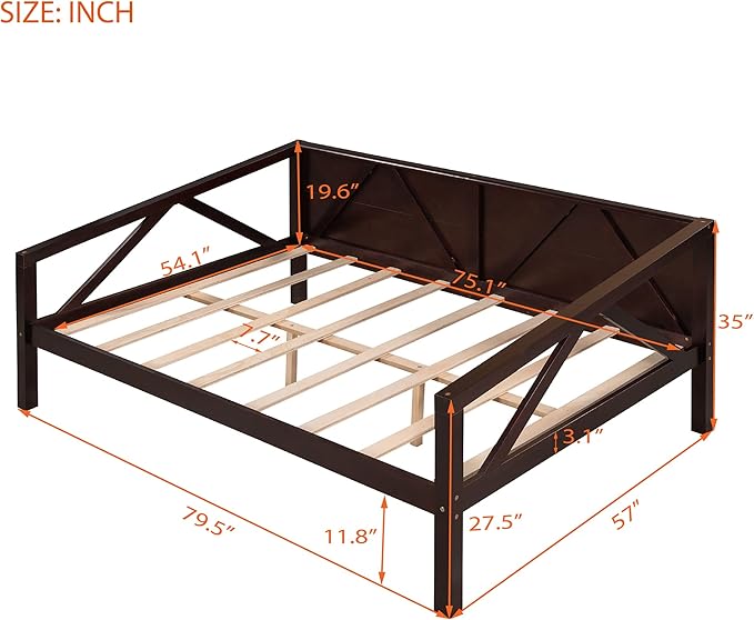Jintop Full Size Daybed with Additional Storage Space,Sturdy Sofa Bed Frame W/ 8 Wood Slat Support,Easy to Install,for Teens Kids Girls Boys,Living Room Bedroom Apartment,Espresso