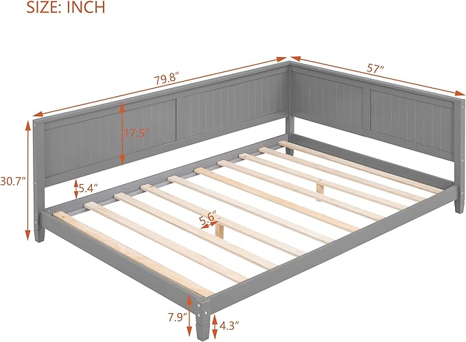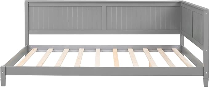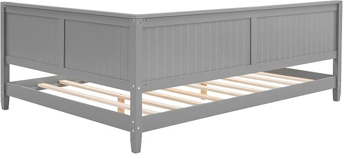 Jintop Full Size Wood Daybed with Slat Support,Sofa Bed Frame W/Backrest and Armrest,Easy to Install,for Teens Kids Girls Boys,Living Room Bedroom Apartment,Gray