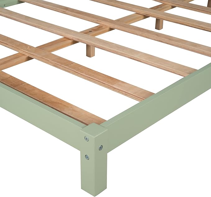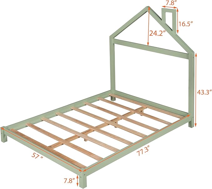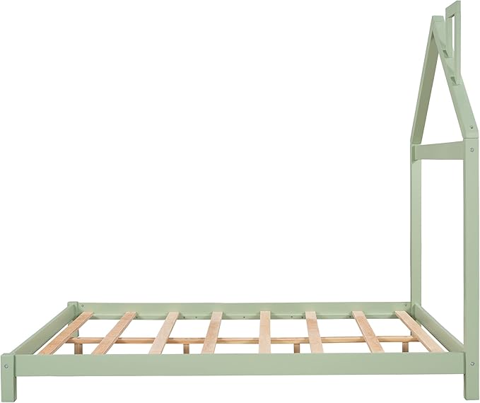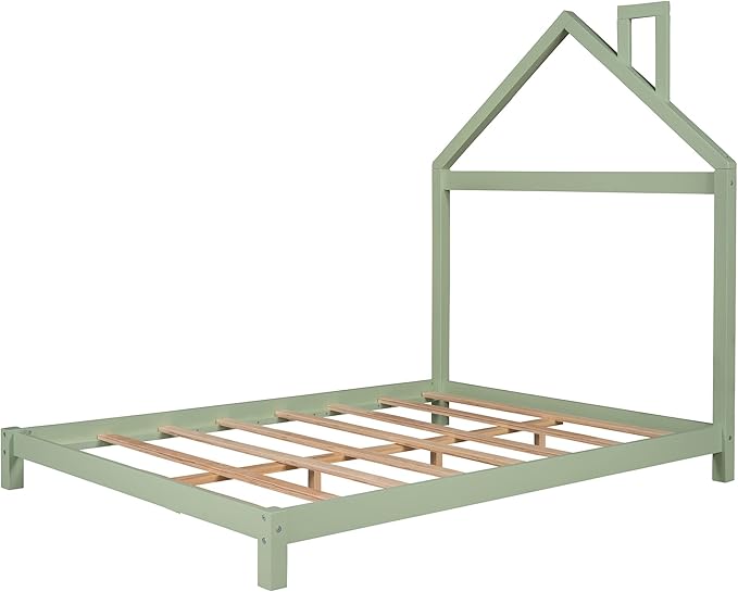 Jintop Full Size Wood Platform Chimney and House-Shaped Headboard,Bedroom Furniture Bed Frame W/ 10 Slat Support,Easy to Install,for Teens Kids Girls Boys,Green