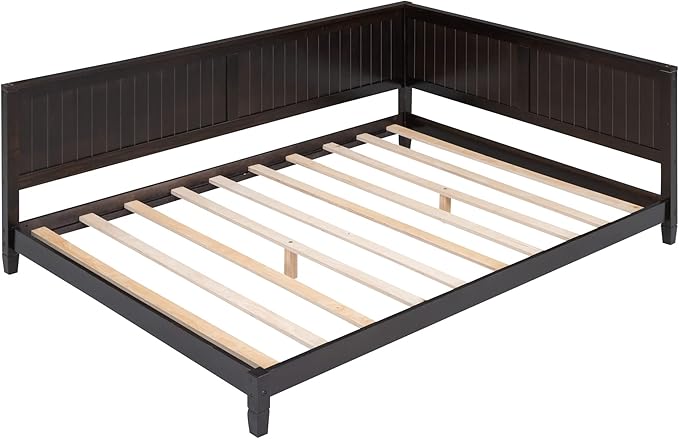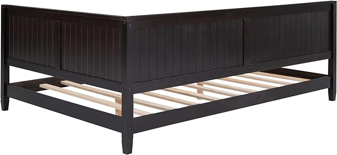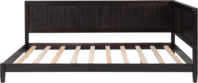 Jintop Full Size Wood Daybed with Slat Support,Sofa Bed Frame W/Backrest and Armrest,Easy to Install,for Teens Kids Girls Boys,Living Room Bedroom Apartment,Espresso