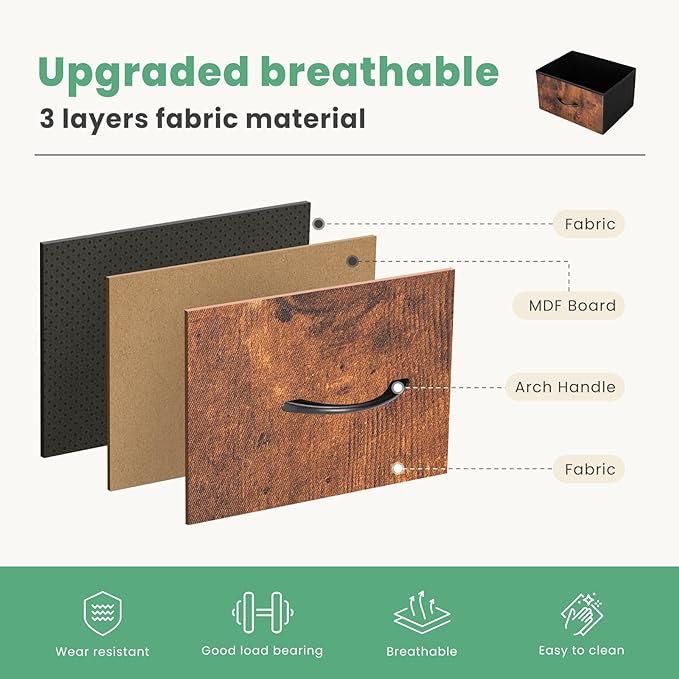 ANTONIA TV Stand Dresser for Bedroom with 5 Fabric Drawer, Entertainment Center for 45 inch Television, Media Console Table with Storage, Open Shelf, Adjustable Feet, Living Room Furniture, Brown