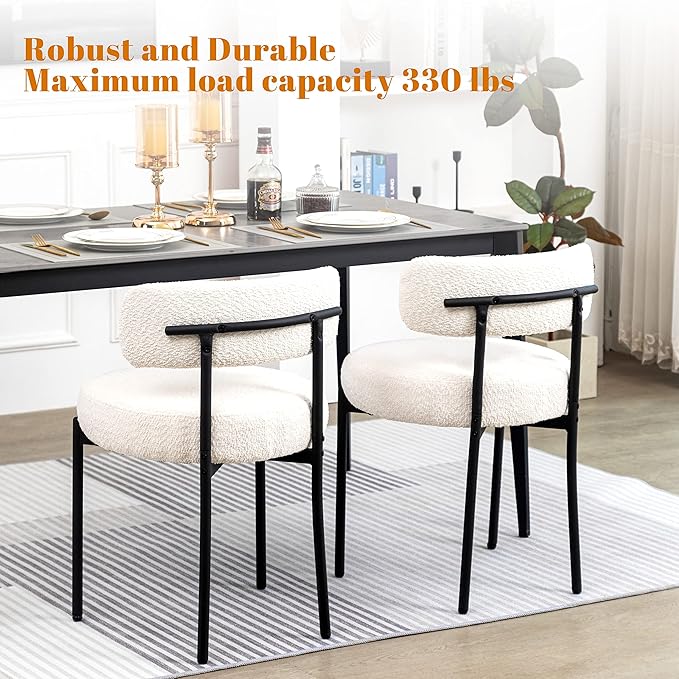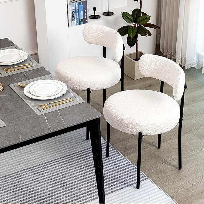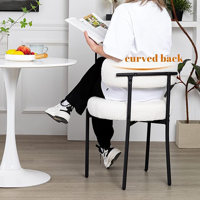 DYHOME White Dining Chair One Chair for Kitchen Dining Room Dining Table,Upholstered Boucle Dining Chair with Black Metal Legs,Accent Dining Side Chair