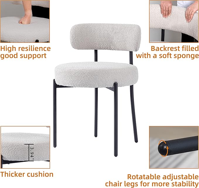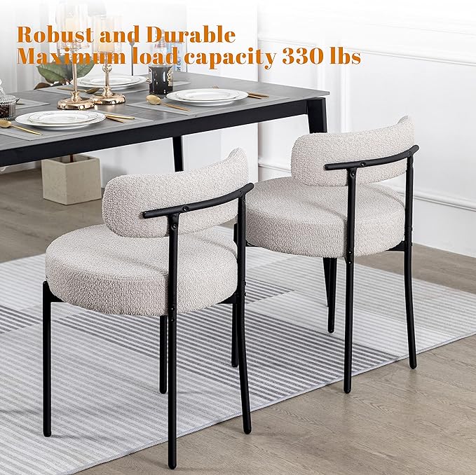 DYHOME Dining Chair One Chair for Kitchen Dining Room Dining Table,Upholstered Boucle Dining Chair with Black Metal Legs,Accent Dining Side Chair,Grey