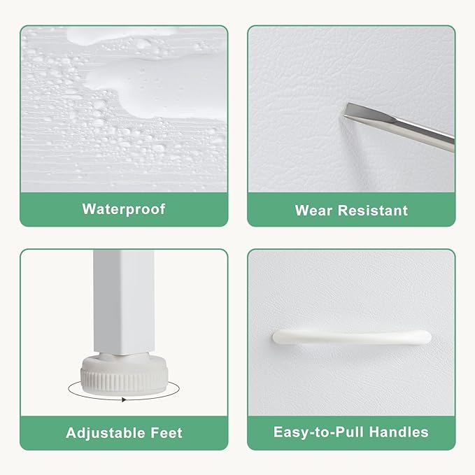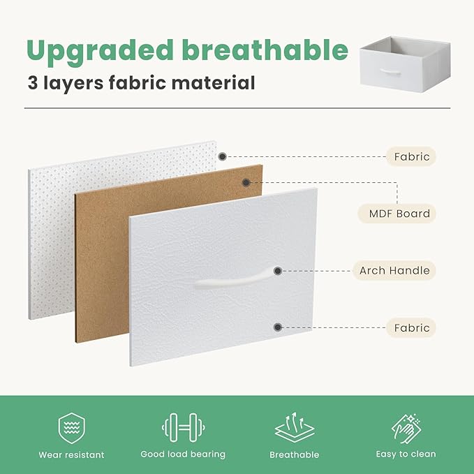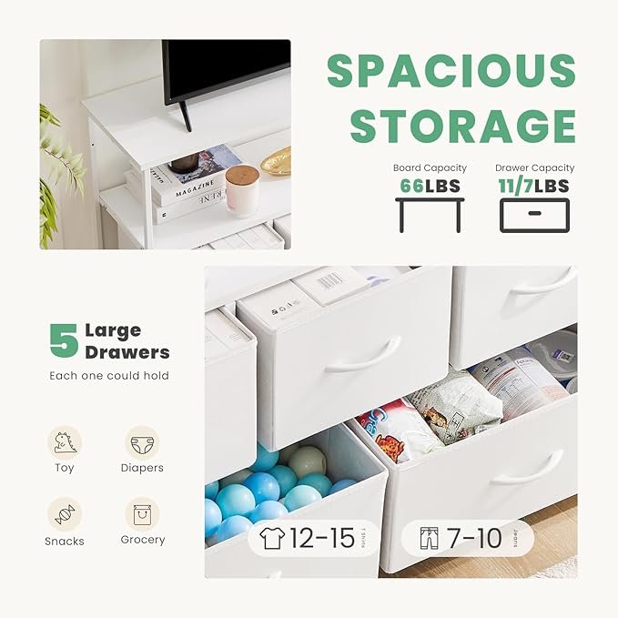 ANTONIA TV Stand Dresser for Bedroom with 5 Fabric Drawer, Entertainment Center for 45 inch Television, Media Console Table with Storage, Open Shelf, Adjustable Feet, Living Room Furniture, White